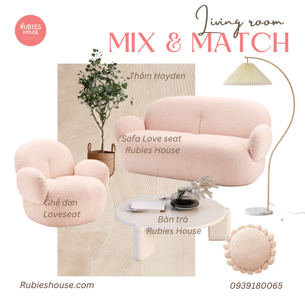- COMBO LOVE SEAT - Combo phòng khách Rubies House dùng để trang trí phòng khách theo thiết kế đơn giản tinh tế